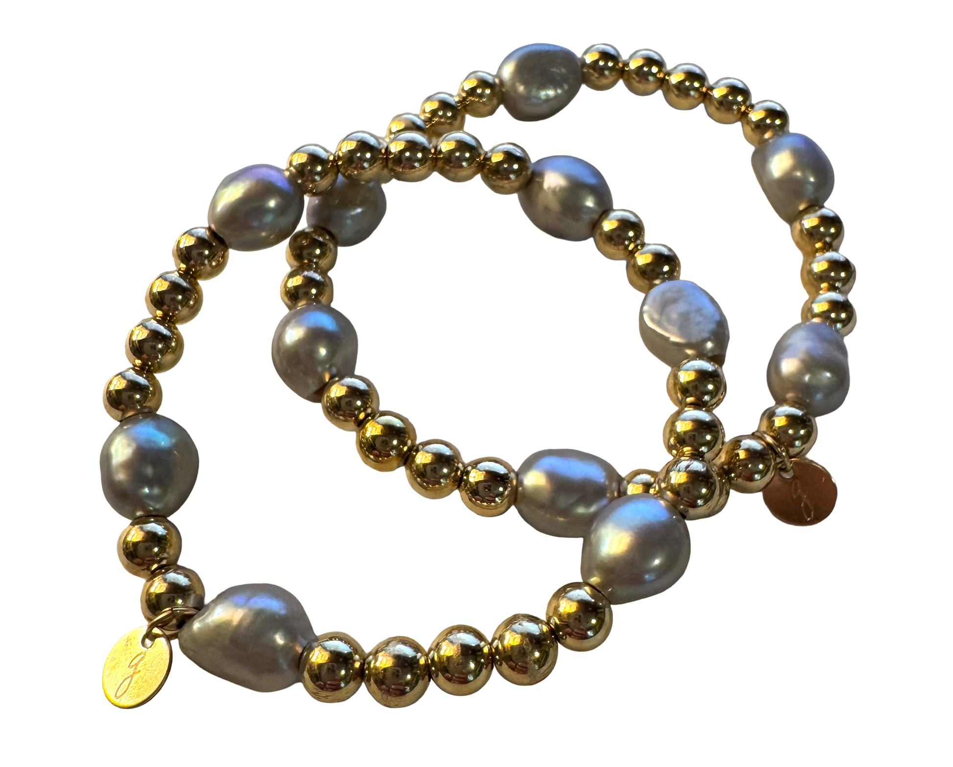 Add a touch of charm to your wrist with this playful Gold Filled and Gray Pearl Bracelet. Featuring delicate 5mm gold-filled beads paired with soft, light-hued gray freshwater pearls, it’s the perfect piece to stack and layer for a stylish, effortless look.
