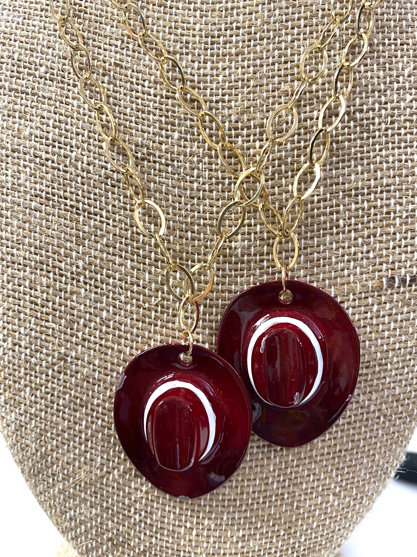 Gold Filled Link Chain Necklace With Maroon Ceramic Cowboy Hat Pendant